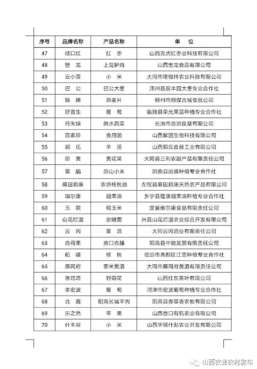 附件:擬入選2021年山西特優(yōu)農(nóng)產(chǎn)品品牌目錄庫名單